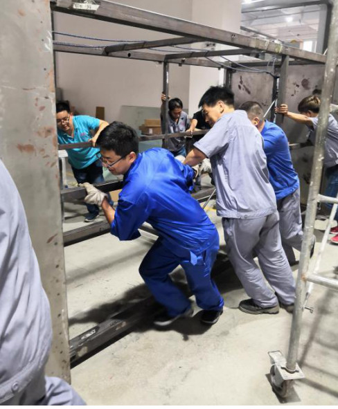 七八月份的驕陽似火,炙烤著大地。在航美車間的每個角落,有一群忙碌的人,正沉浸在機加、焊接、配孔、打磨、裝配、調(diào)試的交響樂中。大家正在如火如荼的加班加點、搶戰(zhàn)金華科技館的項目。面對時間緊、任務(wù)重的挑戰(zhàn),他們積極向上,毫無怨言,深知付出的勞動成果被客戶認(rèn)可是多么光榮和自豪的事情。